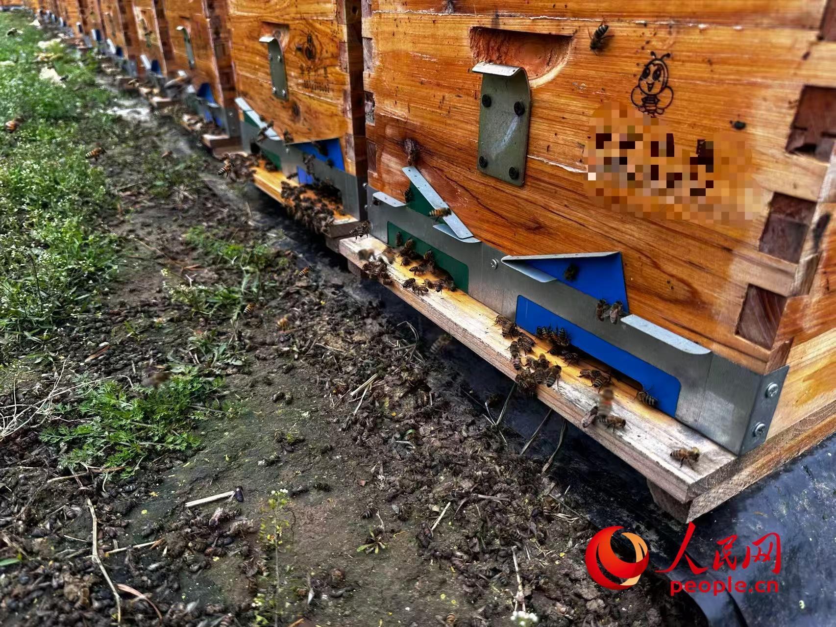 成群的死蜂在蜂箱附近。人民网记者游天燚摄