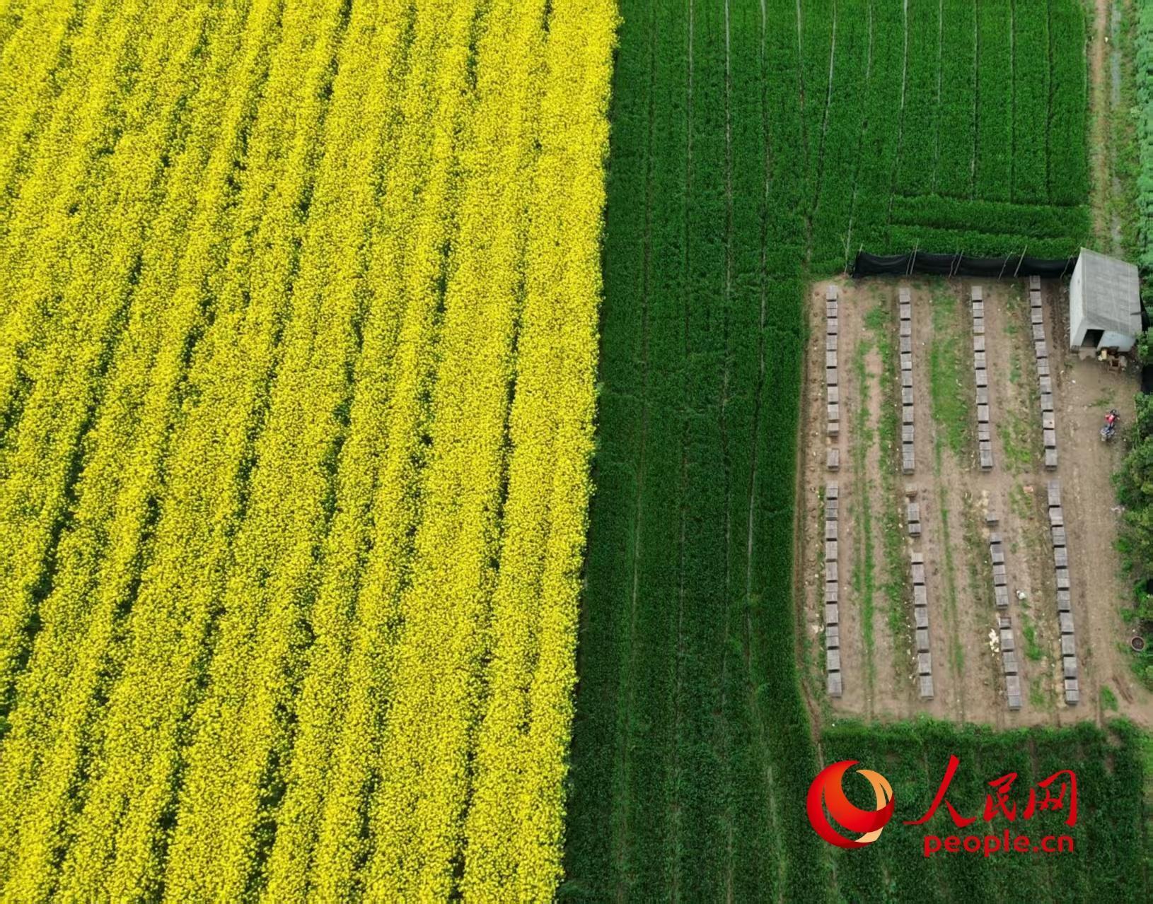 油菜花田附近的蜂场。人民网记者黄钰摄